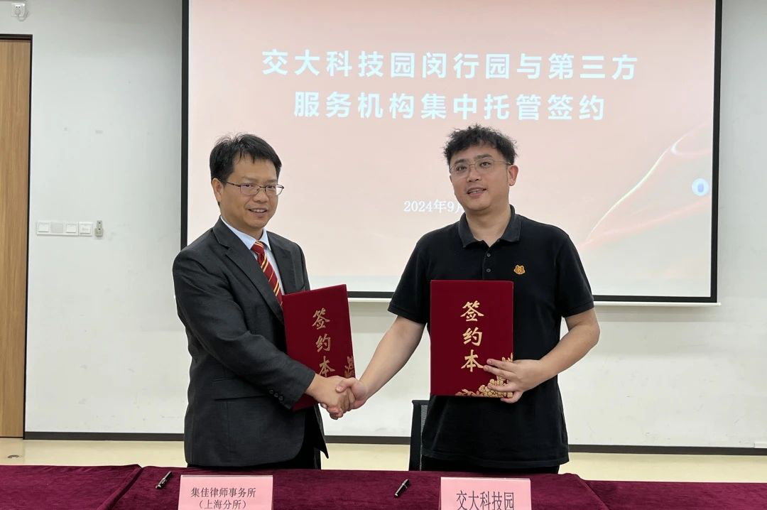 为助力企业科技创新和经济发展护航保障,提供高质量维权公益援助,会上举行了“上海市开发区协会维权援助工作站交大科技园闵行园工作室”揭牌仪式,交大科技园闵行园与蓝鲸体育上海分所进行了托管签约。
