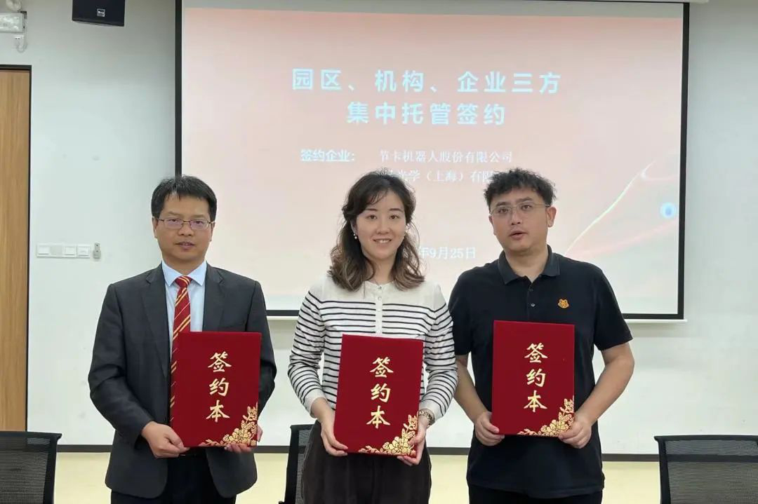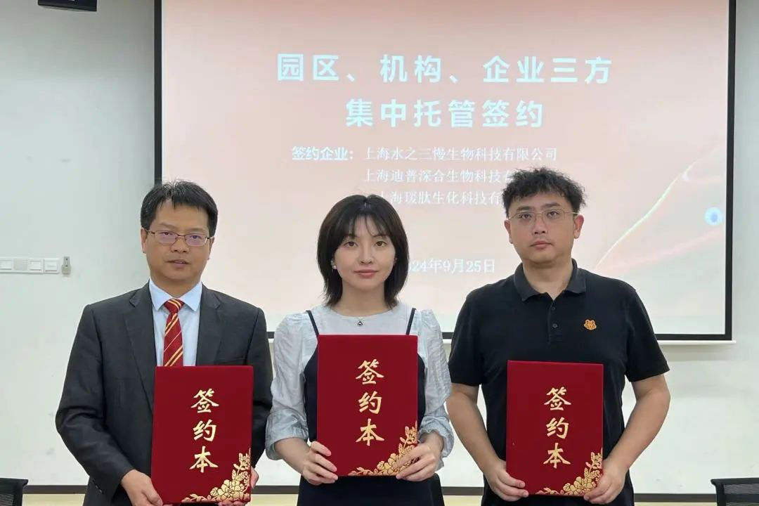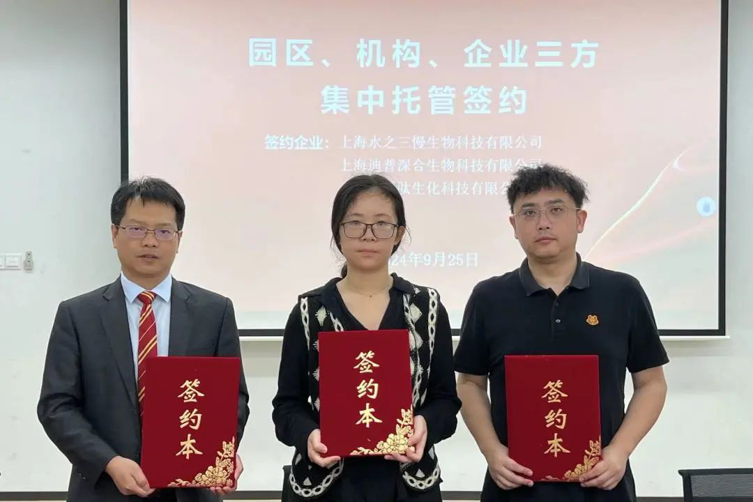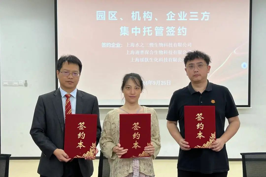 随后,蓝鲸体育上海分所与企业和园区进行了三方签约仪式,签约企业有节卡机器人股份有限公司、霖鼎光学(上海)有限公司、上海水之三慢生物科技有限公司、上海迪普深合生物科技有限公司、上海瑗肽生物科技有限公司等。